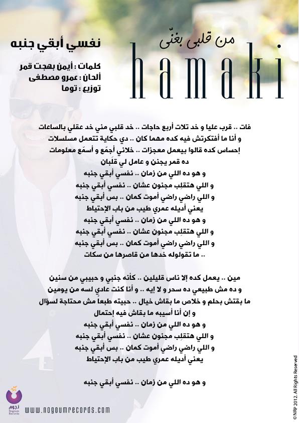 كلمات اغنية كلمات اغنية محمد حماقى من قلبى بغنى
