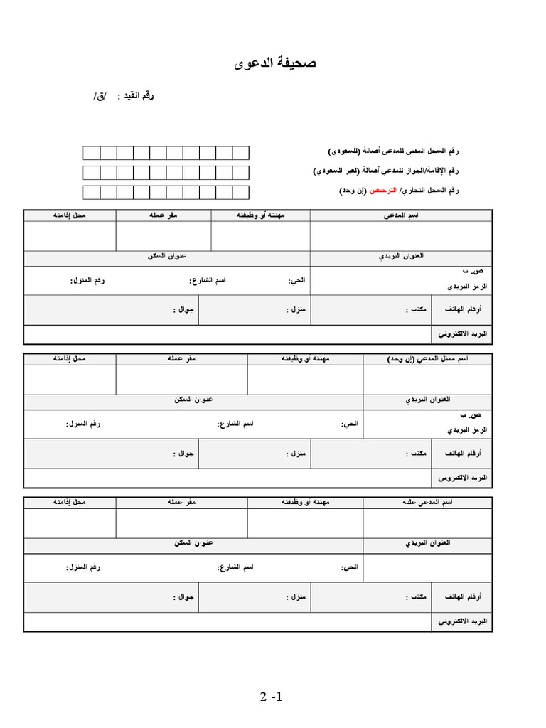 نموذج صحيفة الدعوى